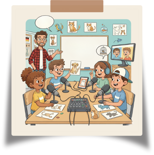 Dans ce podcast, les jeunes ont mis à profit leurs connaissances en allemand pour présenter leurs chats, chiens, hamsters et autres compagnons à quatre pattes . Ce mini projet leur a permis de développer leur confiance en eux.
