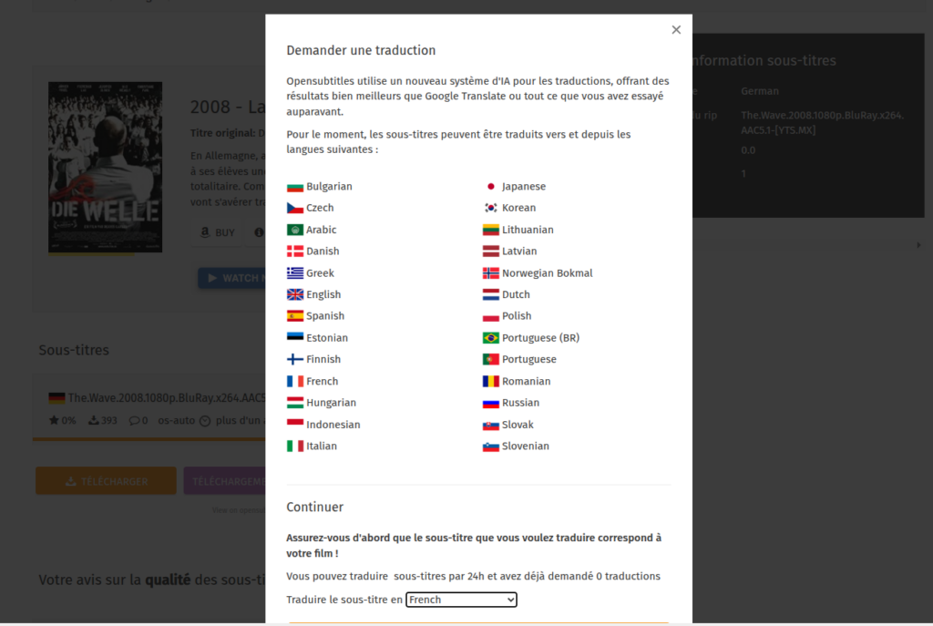 L’une des fonctions les plus intéressantes d’OpenSubtitles est désormais son outil de traduction par Intelligence Artificielle.